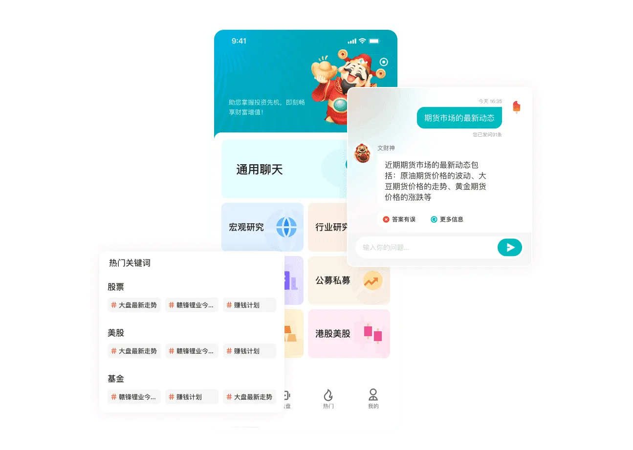 我们为客户打造了一款产品,利用ChatGPT的深度学习能力,对财经领域的大量数据进行训练,使AI模型能够理解和回答复杂的金融问题;采用模块化设计,确保APP的各个功能模块能够独立开发和维护,同时保持整体的协调性。用户可通过微信小程序选择对应财经主题模块进行聊天;聊天回复内容可以点赞,可以重新获取答案,也可以保存答案;用户可以查看热门关键词,并快速发起聊天。通过用户反馈和行为数据,不断优化和调整AI模型,以提供更准确的财经信息服务。