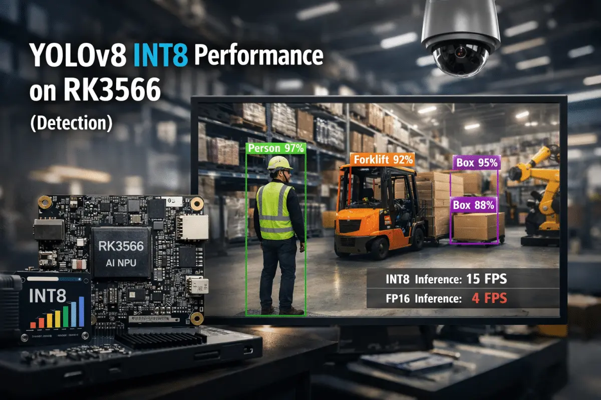 在 RK3566 上,YOLOv8 Detection 只有在 INT8 模式下,才具备接近实时推理的可能性。